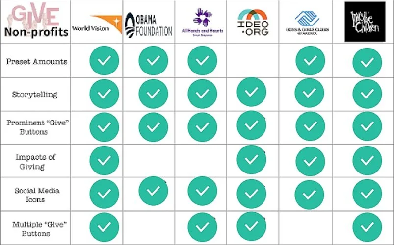 For comparative analysis I reviewed other giving sites of indirect competitors such as Ideo.org, Boys & Girls Club of America, and Invisible Children.